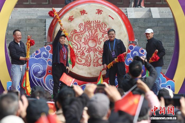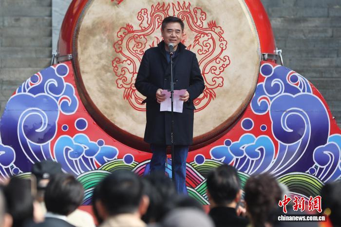 图为弛歉毅(左1)等敲响年夜饱。中新社记者 泱波 摄